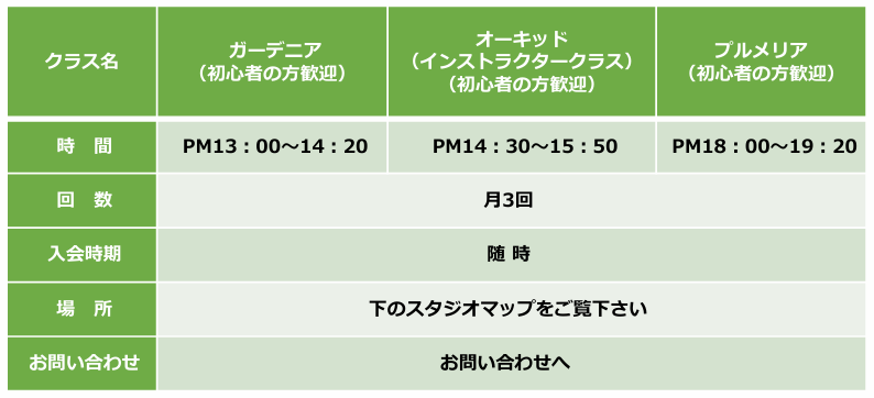 アロヒマカ フラスタジオのレッスンは 月曜日のみです